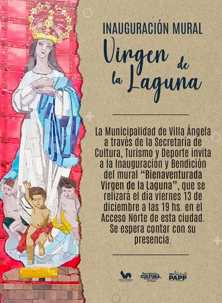 Desde la municipalidad de Villa Ángela y a través de la secretaría de cultura turismo y deporte, se invita a la comunidad a participar de la inauguración del mural de la Virgen de la Laguna, ubicado en el acceso norte de la ciudad.