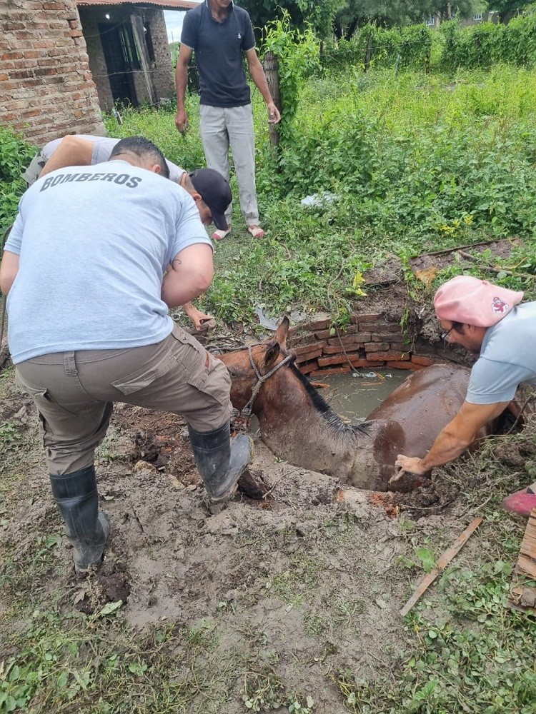 Villa Ángela: BOMBEROS RESCATARON UN EQUINO QUE CAYÓ EN UN POZO DE DOS METROS
