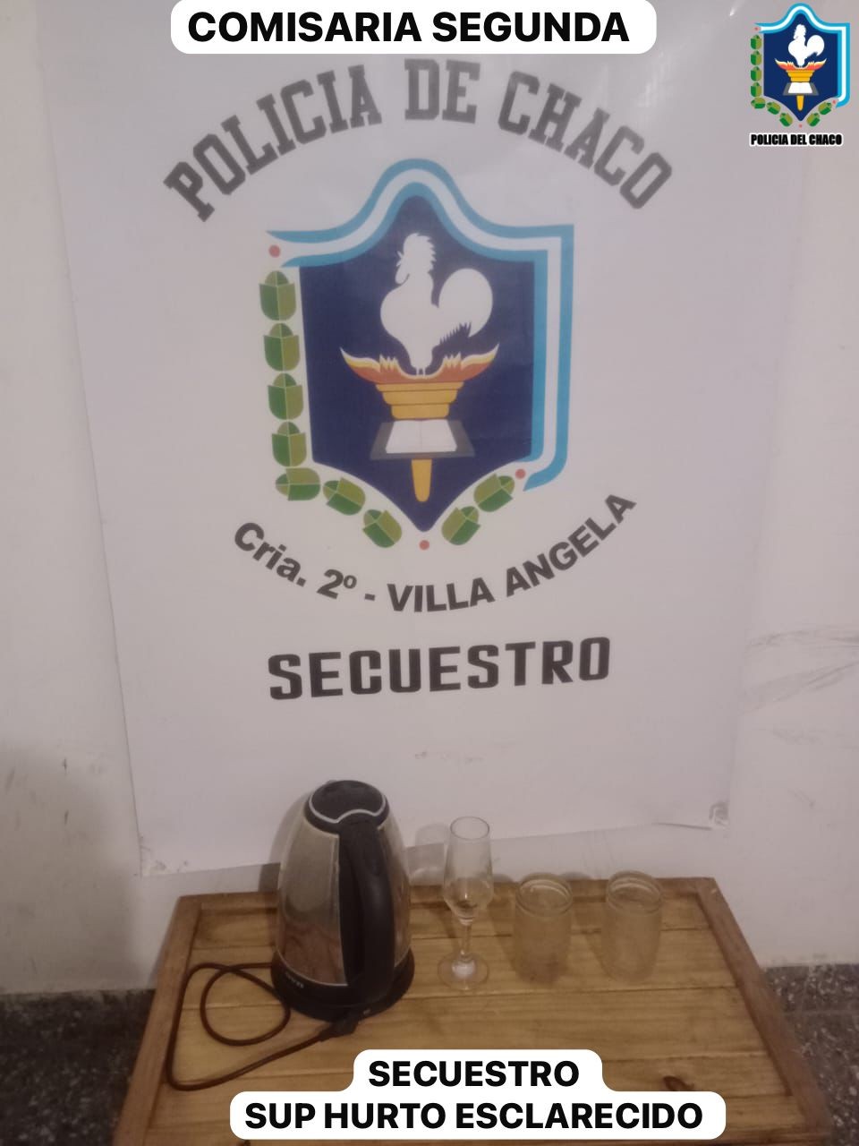Una ciudadana manifestó haber adquirido 1 pava eléctrica, 1 copa de vidrio y 2 vasos de vidrio de un masculino de 19 años. Se procedió al secuestro de los elementos. Seguidamente se logró la conducción del sujeto y notificado de su aprehensión en la presente causa.