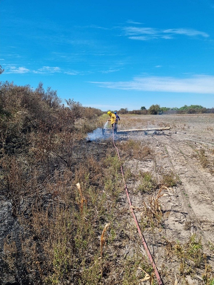 Villa Ángela, Lote 42: BOMBEROS EXTINGUIÓ UN INCENDIO DE PASTISALES SOBRE RUTA Nº95 DONDE SE QUEMAN POSTES DEL TENDIDO ELÉCTRICO