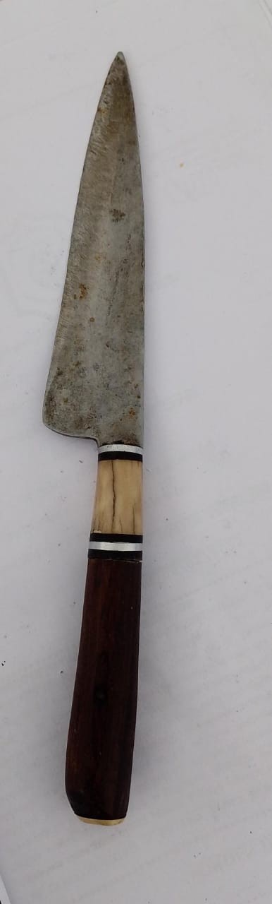 Luego se procedió al secuestro del cuchillo, cabo de madera hoja de corte de 13 cm y conforme a lo ordenado por el Juez de Paz y Faltas, fue notificado de su aprehensión por infracción a la ley 850-J, previo examen médico fue alojado en esta comisaría.