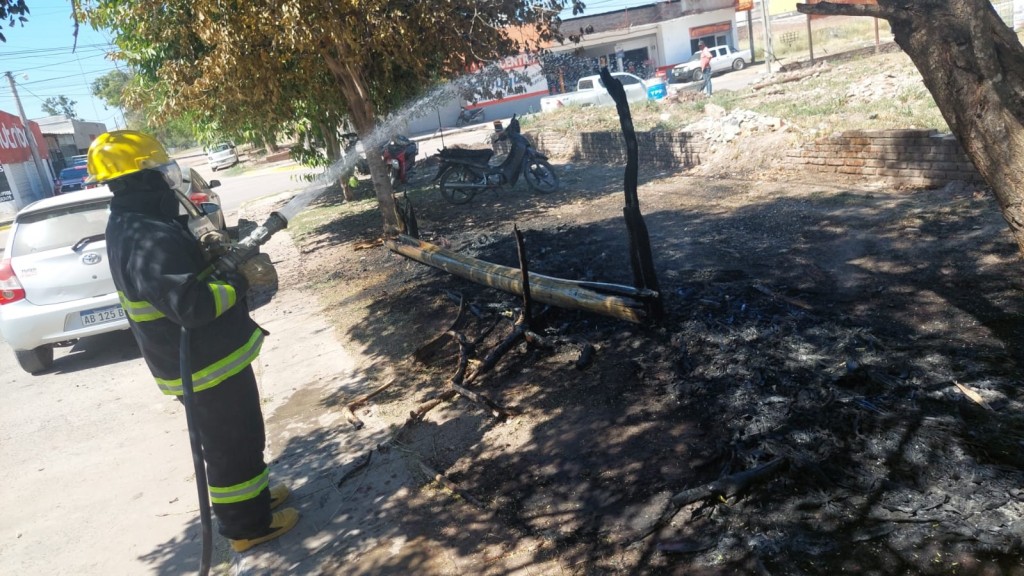 Villa Ángela: BOMBEROS EXTINGUIÓ EL INCENDIO DE UN POSTE DE LA LÍNEA TELEFÓNICA