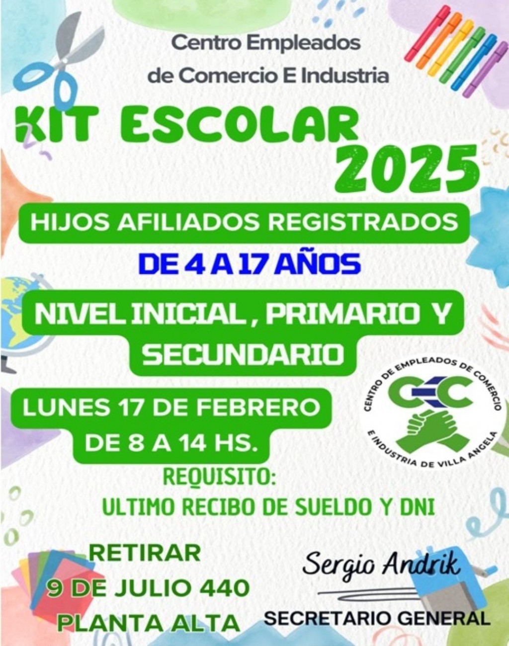 Villa Ángela: EL SINDICATO DE EMPLEADOS DE COMERCIO ANUNCIÓ LA ENTREGA DE KITS ESCOLARES 2025