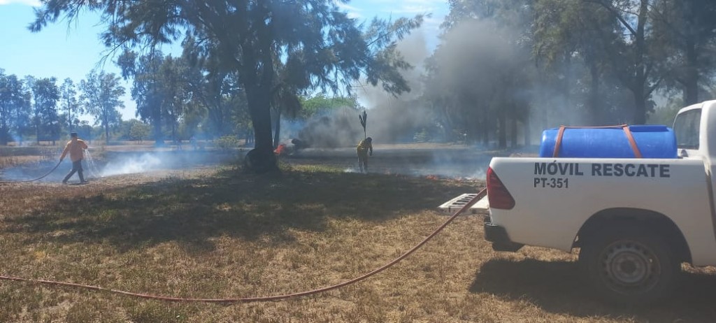 De forma inmediata, se dirigió al lugar dotación en Móvil PT-351 a cargo del Cabo 1° Pol., Víctor Sebastián CIUPAK, arribado se constató fuego sobre pastos propagándose hacia demás terrenos lindantes.