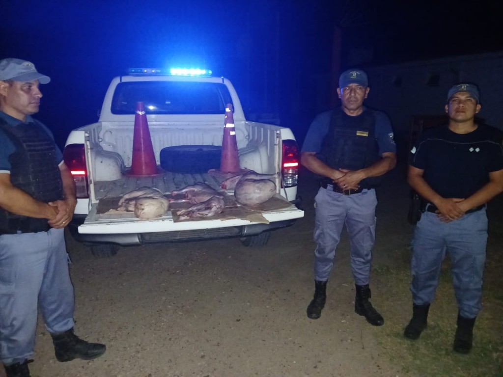 Efectivos de la comisaría local realizando operativo prevencional este martes a las 00:30 horas,toman conocimiento a través de fuentes informativas de que un masculino estaría transportando carne de dudosa procedencia.