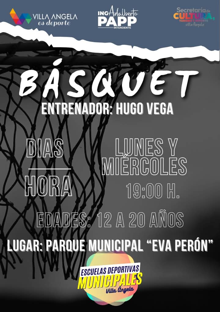 B�SQUET: lunes y mi�rcoles a las 19:00 horas en el parque municipal ?Eva Per�n?, desde los 12 a 20 a�os. Entrenador: Hugo Vega