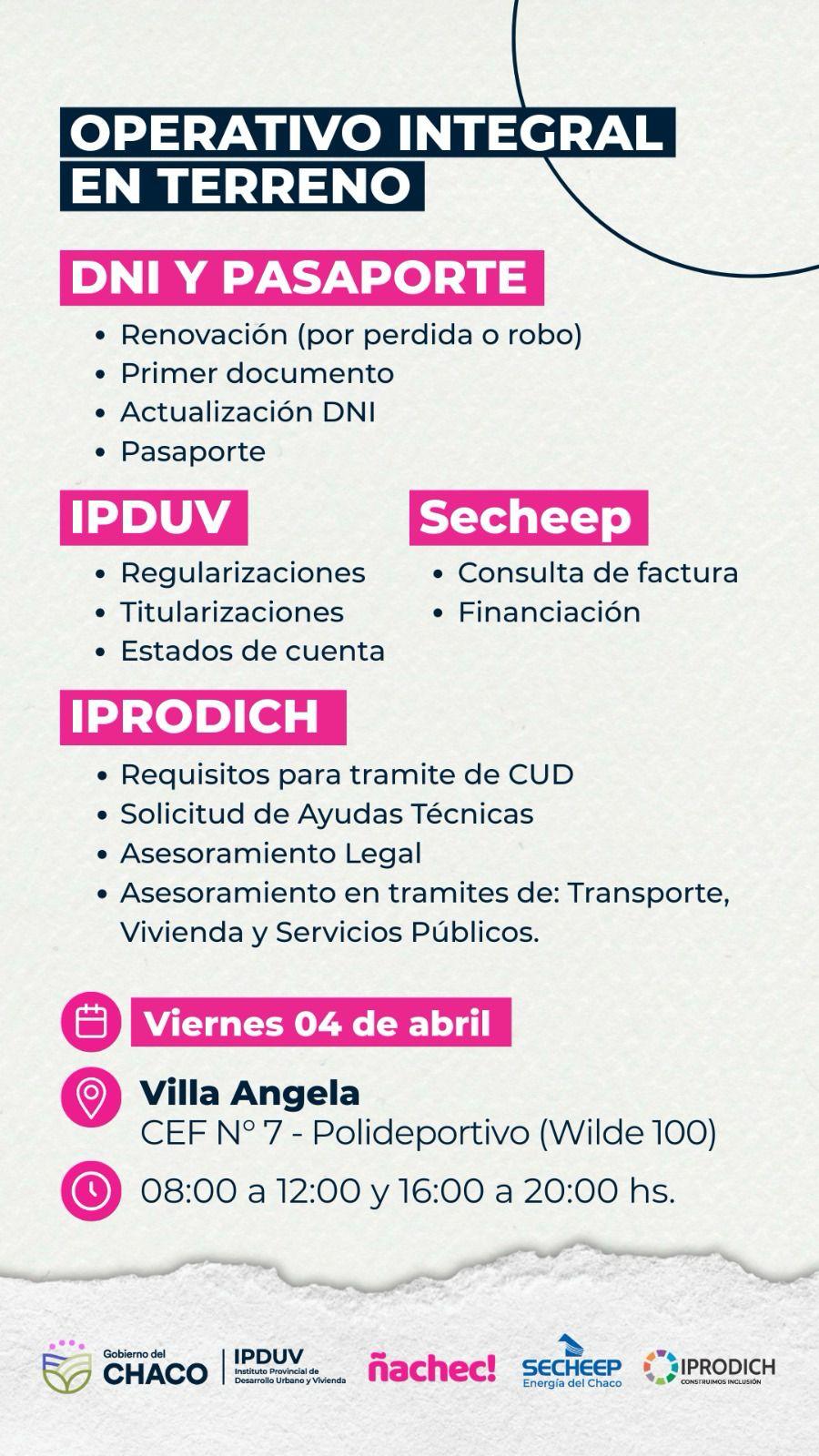 ESTE VIERNES 4 DE ABRIL: EL OPERATIVO INTEGRAL EN TERRENO LLEGA A VILLA ÁNGELA