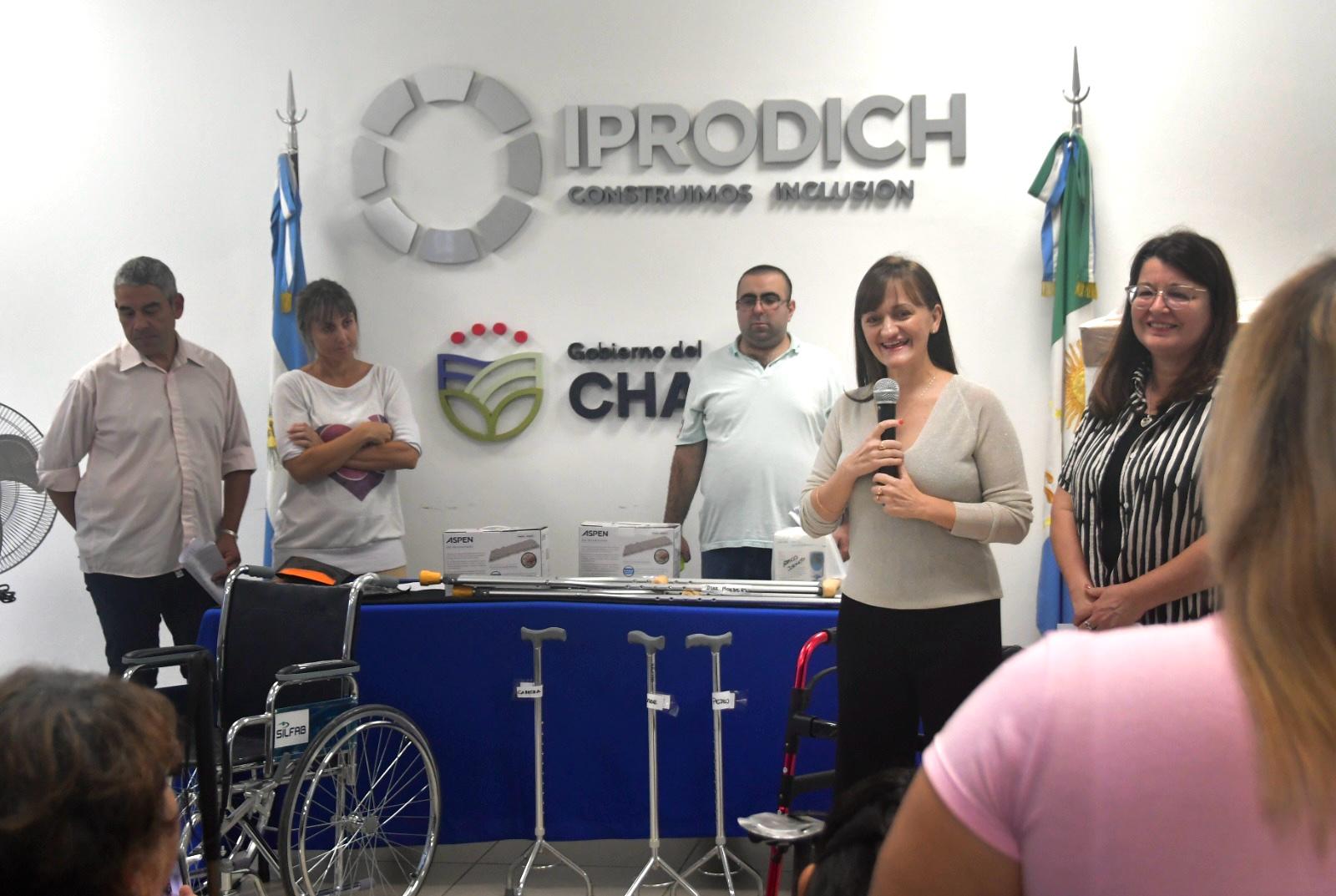 Junto a la titular del Iprodich, Ana Mitoire, la vicegobernadora Schneider entregó hoy elementos y ayudas técnicas para mejorar la calidad de vida de más de 30 personas con discapacidad.