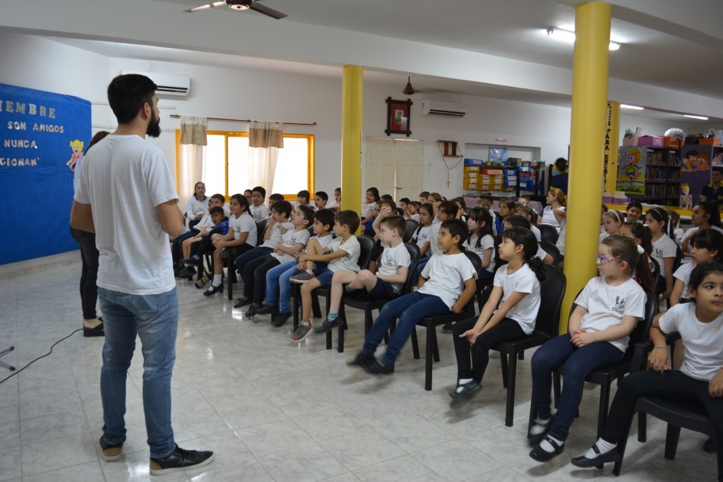 Florencia Giacomel indicó que “desde el concejo de niñez se realizan charlas, en este caso para 1ro y 2do grado turno mañana, de concientización y sensibilización sobre el uso de pirotecnia y sus efectos. Agradecemos a la institución por recibirnos, y también al jardín de la EEP N° 389”.