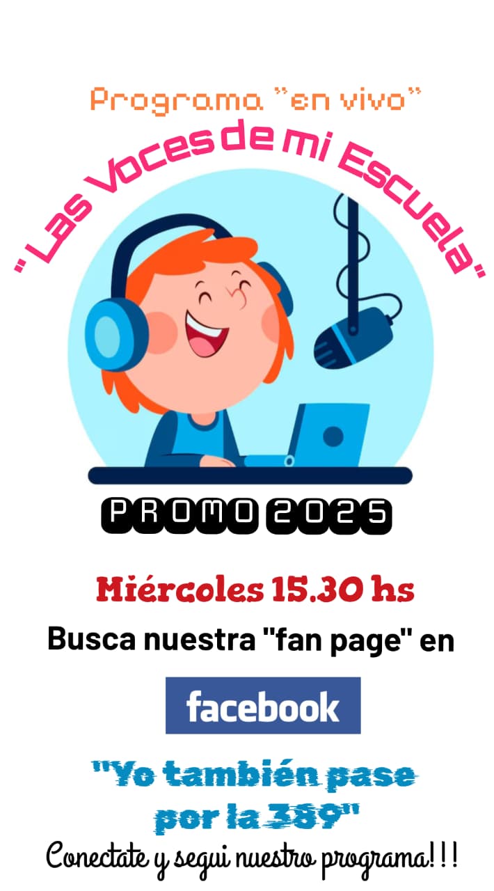 La docente de la escuela de educación primaria N°389, Marina Lopez, se refirió al programa radial que llevan adelante sus alumnos que se difunde por una página de Facebook de la escuela (Yo también pasé por la escuela 389) y se emite todos los miércoles a las 15:30.