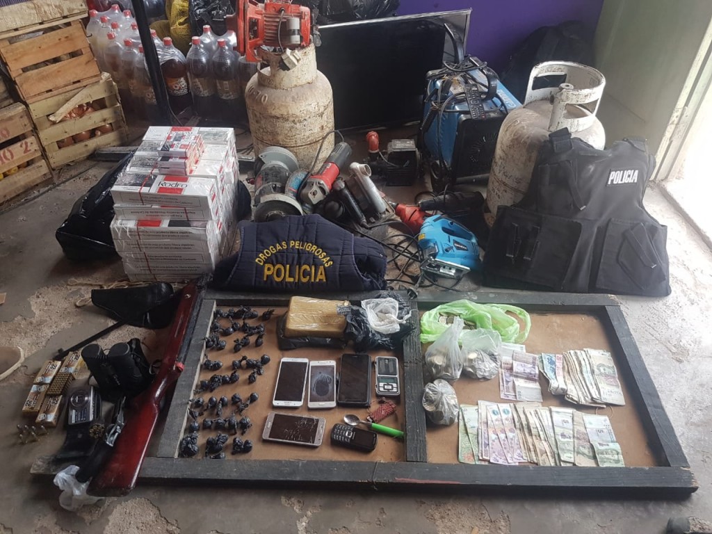 DESBARATAN CENTRO DE VENTA DE DROGAS DONDE ADEMÁS SE SECUESTRÓ ARMAS, DINERO, CIGARRILLOS Y VARIOS ELEMENTOS ROBADOS.