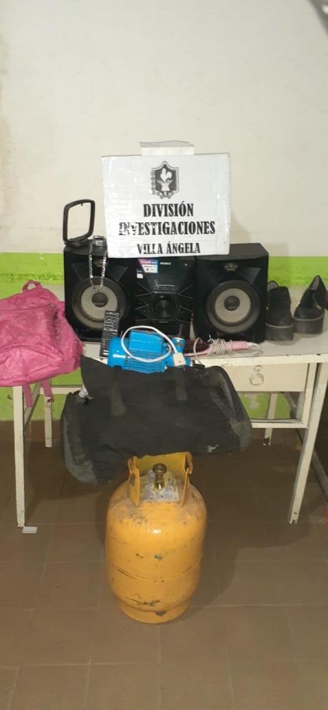 Con esta información se abocaron al esclarecimiento del hecho, lográndose en hs de la mañana al recupero de; un Tubo de Gas de color Amarillo, de 10 kgrs, un equipo de Música m/SANYO, con dos parlantes y control remoto, un bolso de nylon conteniendo ropas varias, una bomba centrifuga m/Gamma, ½ Hp, color azul.