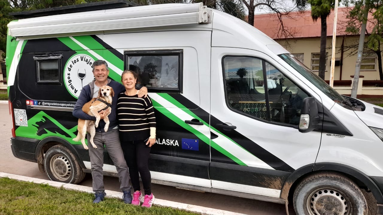 Oscar y Andrea de "amigos de los viajes y el vino" son viajeros permanentes que se trasladan junto a su mascota en una tráfic que, además de ser su móvil, es su hogar. Este estilo de vida comenzó hace tiempo, pero desde fin de año pasado ya son viajeros permanentes.