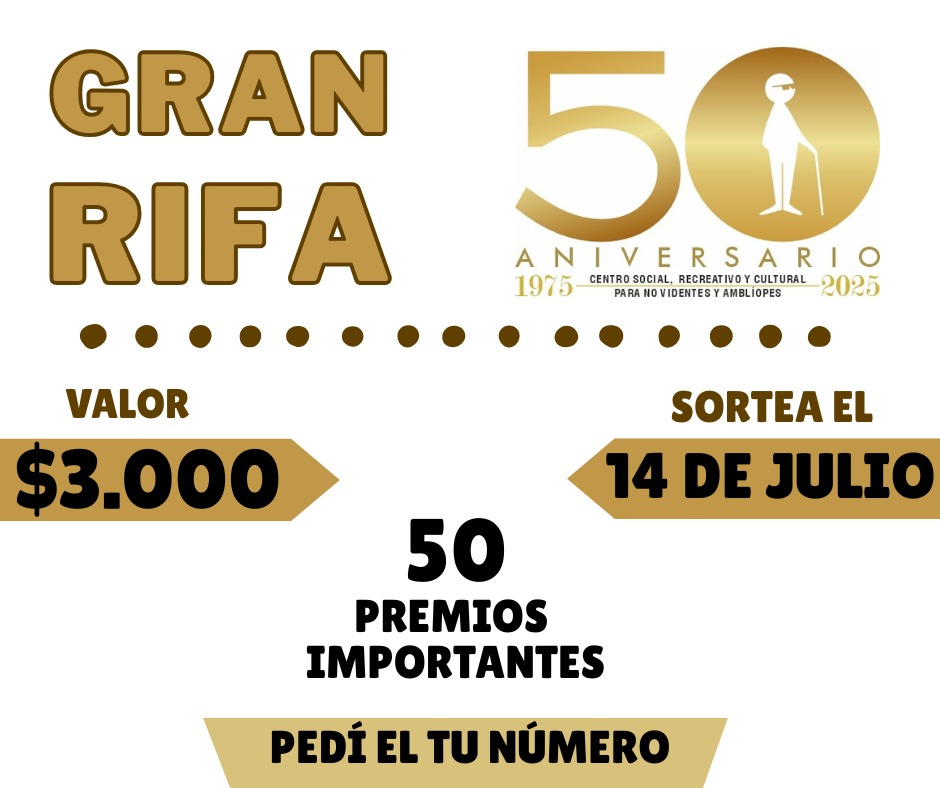 VILLA ÁNGELA: GRAN RIFA 50° ANIVERSARIO CENTRO SOCIAL, RECREATIVO Y CULTURAL PARA NO VIDENTES Y AMBLÍOPES