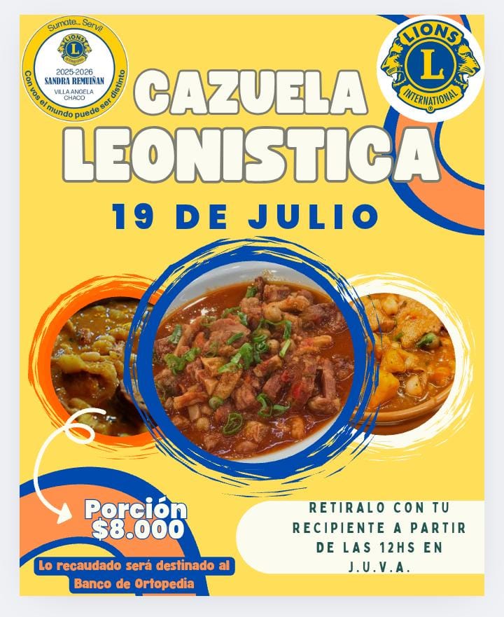 EL CLUB DE LEONES DE VILLA ÁNGELA REALIZA VENTA DE CAZUELA DE MONDONGO EL 19 DE JULIO