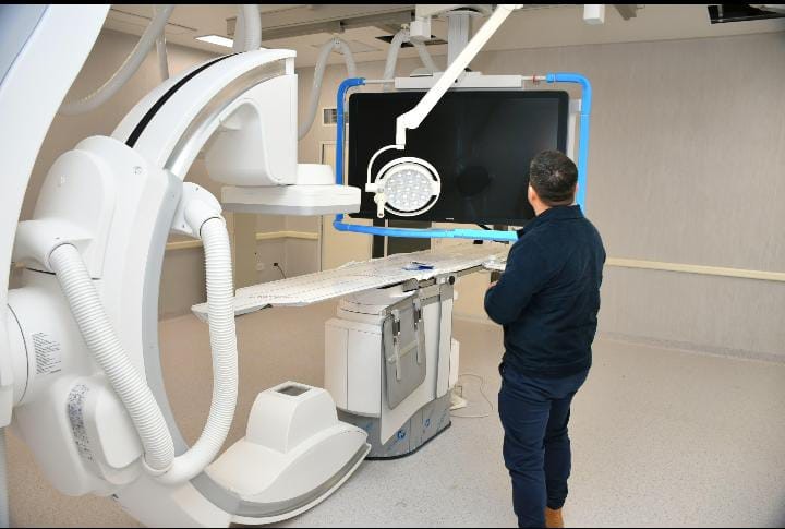 El subsecretario de Programación y Gestión Estratégica, Dr. Rafael Meneses, recorrió las instalaciones del nuevo Servicio de Hemodinamia y supervisó el avance de obras “Conocimos el angiógrafo, observamos la evolución del montaje, y constatamos que el equipo llegó en perfectas condiciones. Estará completamente instalado con toda la maquinaria dispuesta para su uso”, expresó.