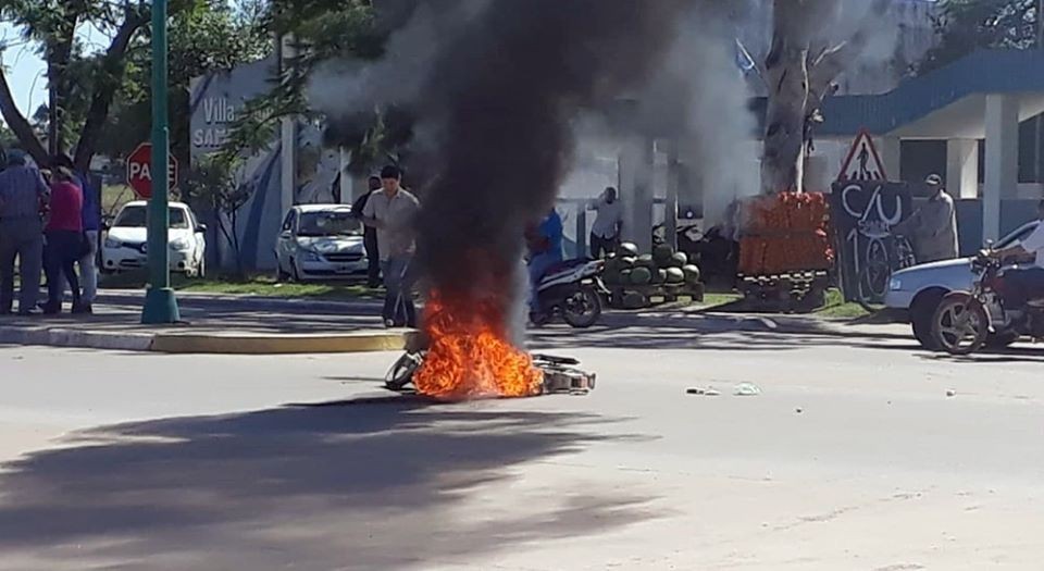 VILLA ANGELA : UNA MOTOCICLETA SE PRENDIÓ FUEGO TRAS SER COLISIONADA