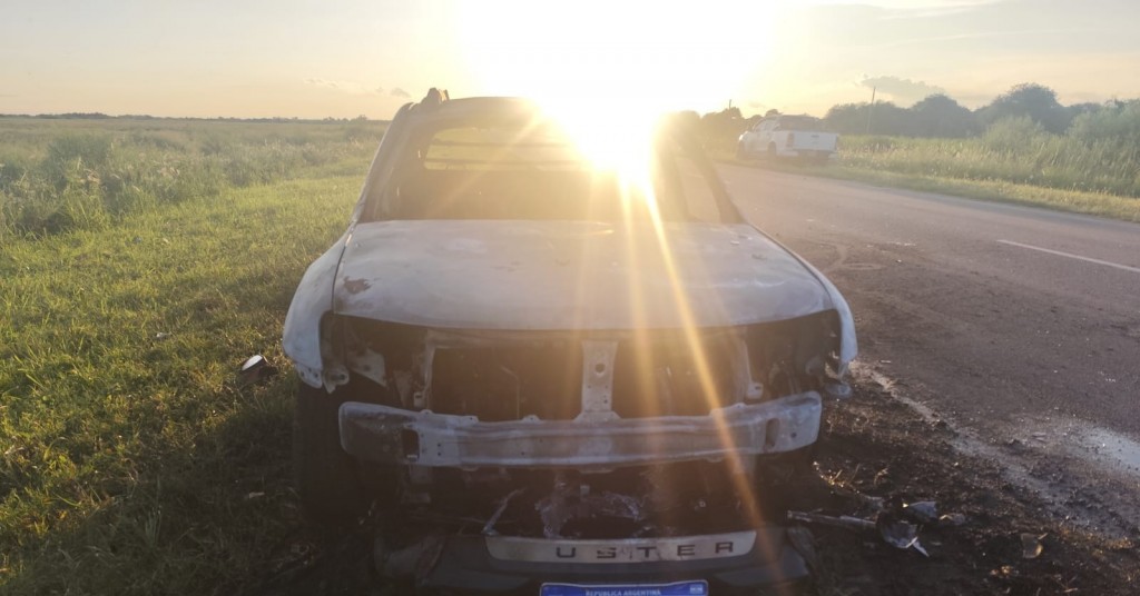 Un vehículo Renault Duster Oroch, modelo 2018, se incendió cerca de las 19 horas, a unos 200 metros del acceso Norte a la ciudad de Villa Ángela, luego de sufrir un desperfecto mecánico mientras circulaba con normalidad.