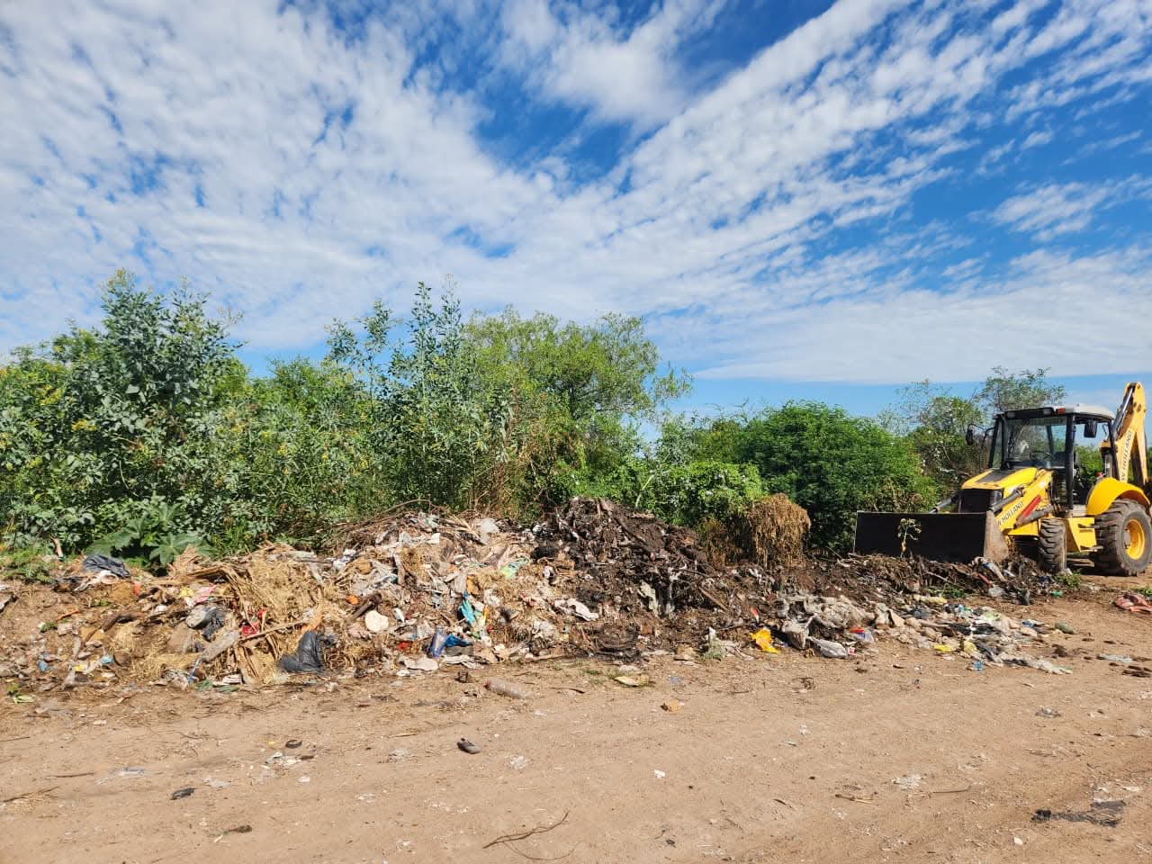 Continúa el despliegue de maquinaria municipal para eliminar los focos de contaminación, en los diferentes sectores de nuestra ciudad. Durante esta mañana, los equipos de servicios públicos trabajaron en la esquina de Avenida Las Flores y Monteagudo, retirando grandes volúmenes de residuos acumulados.