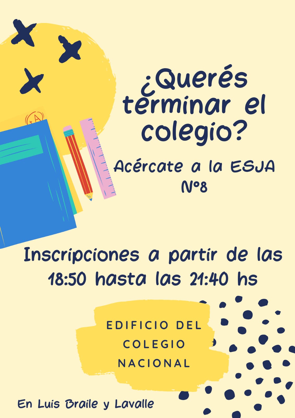 AMPLÍAN INSCRIPCIONES EN LA ESJA N� 8 PARA JÓVENES Y ADULTOS QUE QUIERAN INICIAR O TERMINAR EL SECUNDARIO
