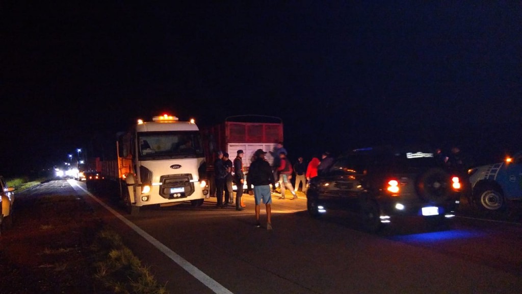 El día 20 de diciembre a las 21 hs, se tomó comocimiento de un supuesto corte de ruta sobre Ruta Nacional N°95, km 1018 aproximadamente, se arribó al lugar y se constata de que grupo de 50 personas masculinos y femeninos a pie y motociletas, con tambores y banderas con inscripciones de la Organizacion Barrial Tupac Amaru, sobre la cinta asfaltica en un rango de 150 metros con quema de goma en ambos extremos y vehiculos 4 camionetas, 2 camiones con acoplado y 1 maquina con pala impidiendo pasos vehicular.