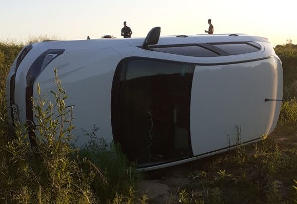 Personal de la DZIVA, informa sobre un accidente de tránsito en ruta 95 en donde un Volkswagen Gol, volcó por esquivar los baches.