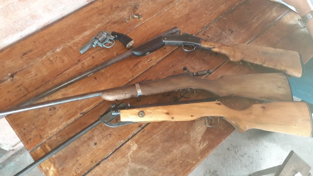En el lugar indicado en la Orden de allanamiento N° 92 pese al mal estado de los caminos, se logró llegar al Domicilio perteneciente a la ciudadana, de 55 años, donde al realizar el registro del domicilio, se procedió al formal secuestro de una Escopeta sin marca Visible, calibre 12; un Rifle marca JAGUAR, calibre 22; un Revolver marca BAGUAL, calibre 22, y un Rifle Aire Comprimiendo.