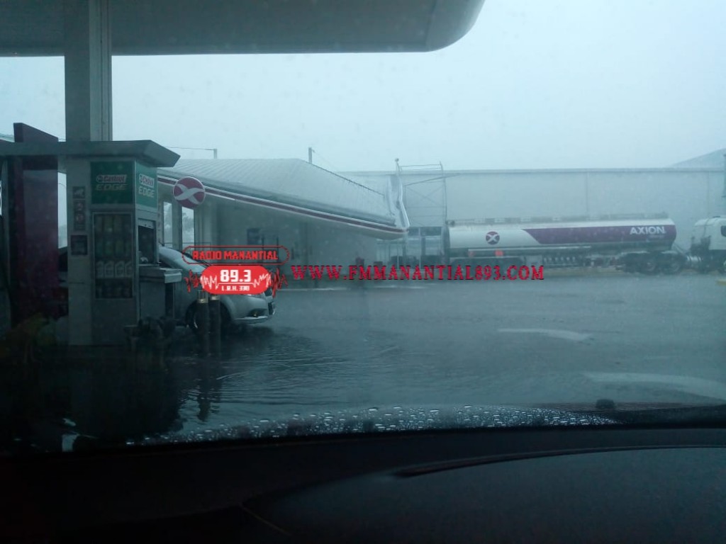 Personal Policial de Comisaría primer informa la situacion que dejó la tormenta en la ciudad. Ademas del destrozo del Techo de la estación de servicio. Las calles centricas se encuentran anegadas.