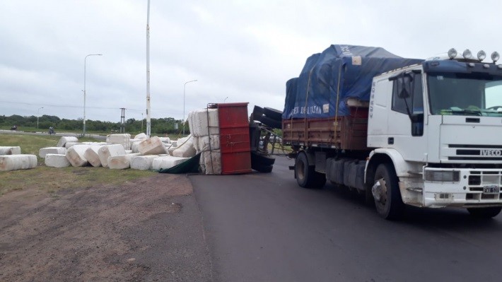Volcó un camión de carga en la rotonda de Sabin y ruta 16