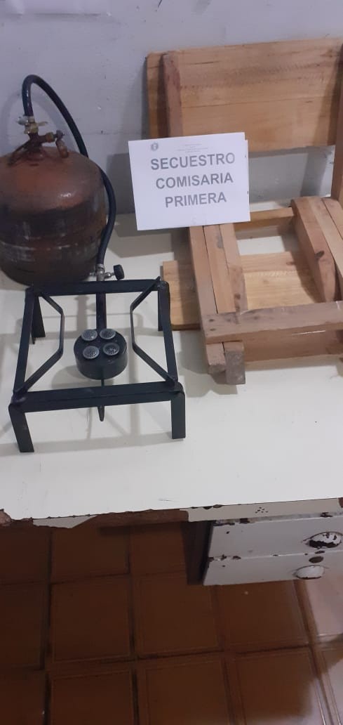 El Denunciante al salir, constata que personas desconocidas habrían sustraído una garrafa pequeña roja de 2 kg, con un anafe de una hornalla y un banco de madera color marrón, que se encontraban en la caja de herramientas del camión del denunciante, estacionado en la calle, siendo este un IVECO, modelo CURSOR 310, color blanco.