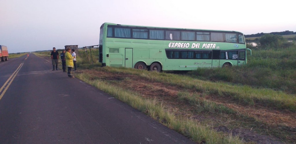 RUTA N°5 CRUCE DE VENADO GRANDE: UN COLECTIVO DE TRANSPORTE DE PASAJEROS SE PASÓ LA CURVA Y TERMINÓ EN LA BANQUINA.