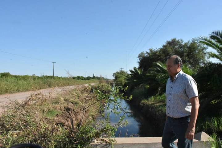 El ing. Adalberto Papp, intendente de la municipalidad de Villa Ángela, acompañado por funcionarios, recorrió esta mañana los canales de la ciudad donde está trabajando la excavadora