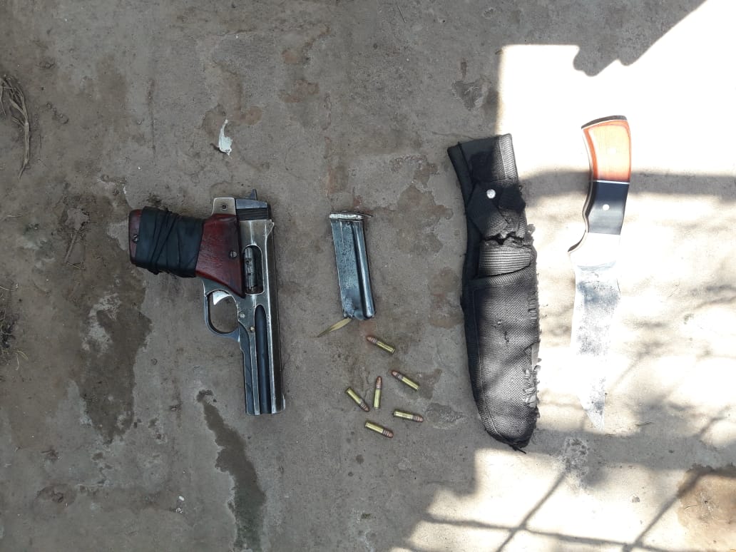 En su moto encontraron, un arma de fuego, un cuchillo y cartuchos.
