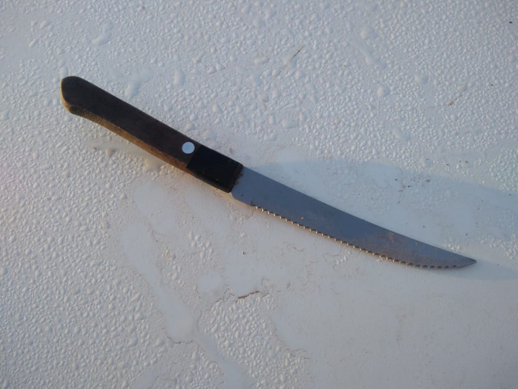 Asi mismo otros participes del mismo serian (2) lesionados con arma blanca,  E.B. de 24, domiciliado en el B° Vivero Sur, y R. A. B. de 19 años, domiciliado en el B° Vivero Sur ambos de esta localidad, lográndose el secuestro de un elemento punzo cortante (1) cuhillo de cocina de hoja acerrada con cabo madera con mancha rojiza en la zona de la hoja metalica.