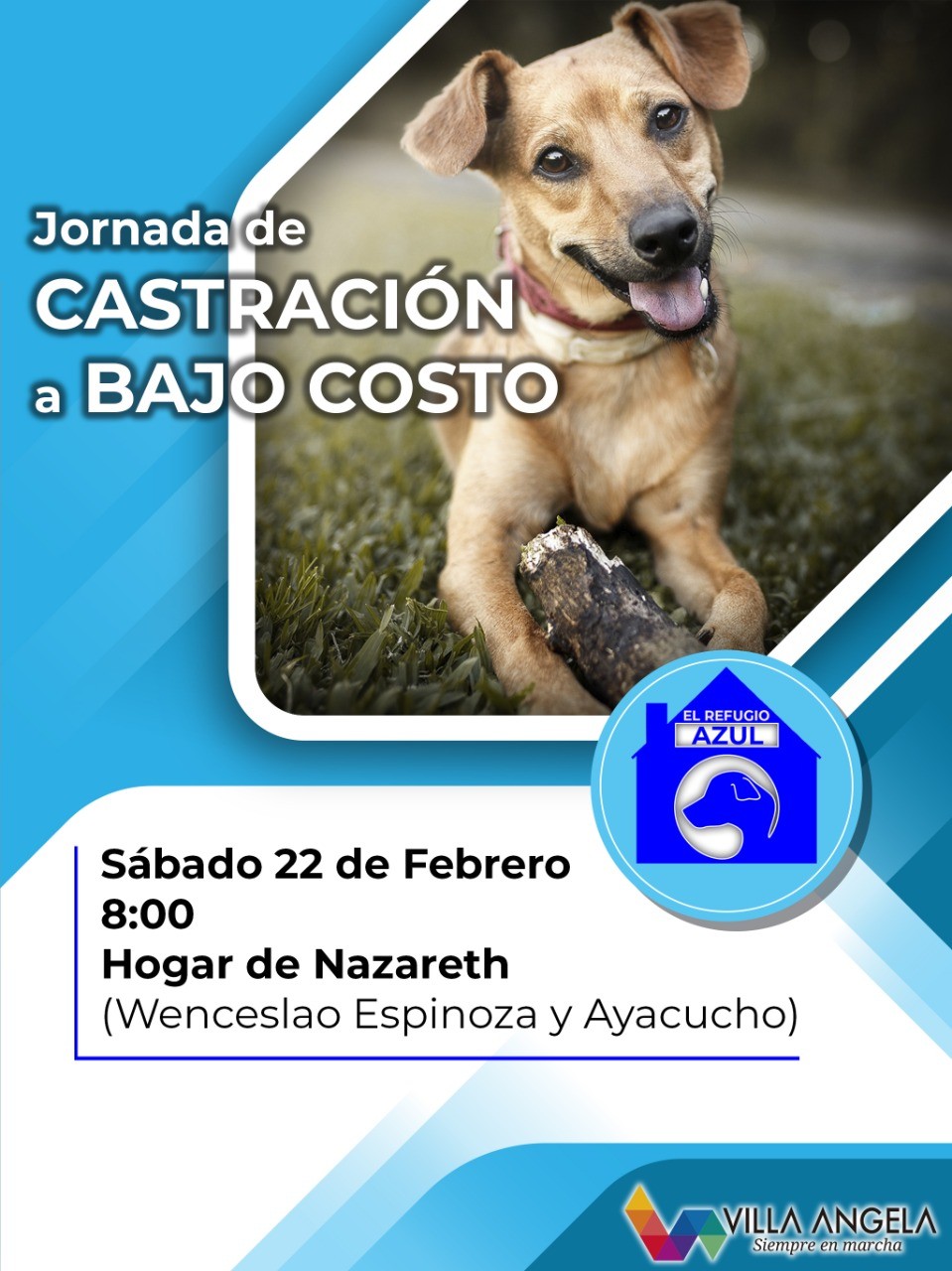 La Municipalidad de Villa Ángela, en coordinación con el Refugio Azul de esta Ciudad, establece nuevas fechas de castración, a bajo costo, para gatos y perros de ambos sexos. Además, la Secretaría de Medio Ambiente acompañará las jornadas con la vacunación gratuita de animales.