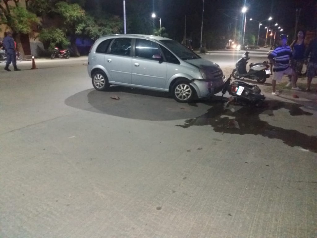 En fecha 11 de febrero a las 22:30 hs, se toma conocimiento de un accidente de transito. Constituida la prevencion se establece un colision entre automovil Chevrolet, Meriva, color gris, conducido por A. L., de 67 AÑOS, domiciliado en el BARRIO 80 vivi. y una motocicleta Gilera, de 110 c.c., roja, guiada por G. R., de 23 AÑOS, domiciliado en el BARRIO JUAN DIEGO, quién resultara lesionado.