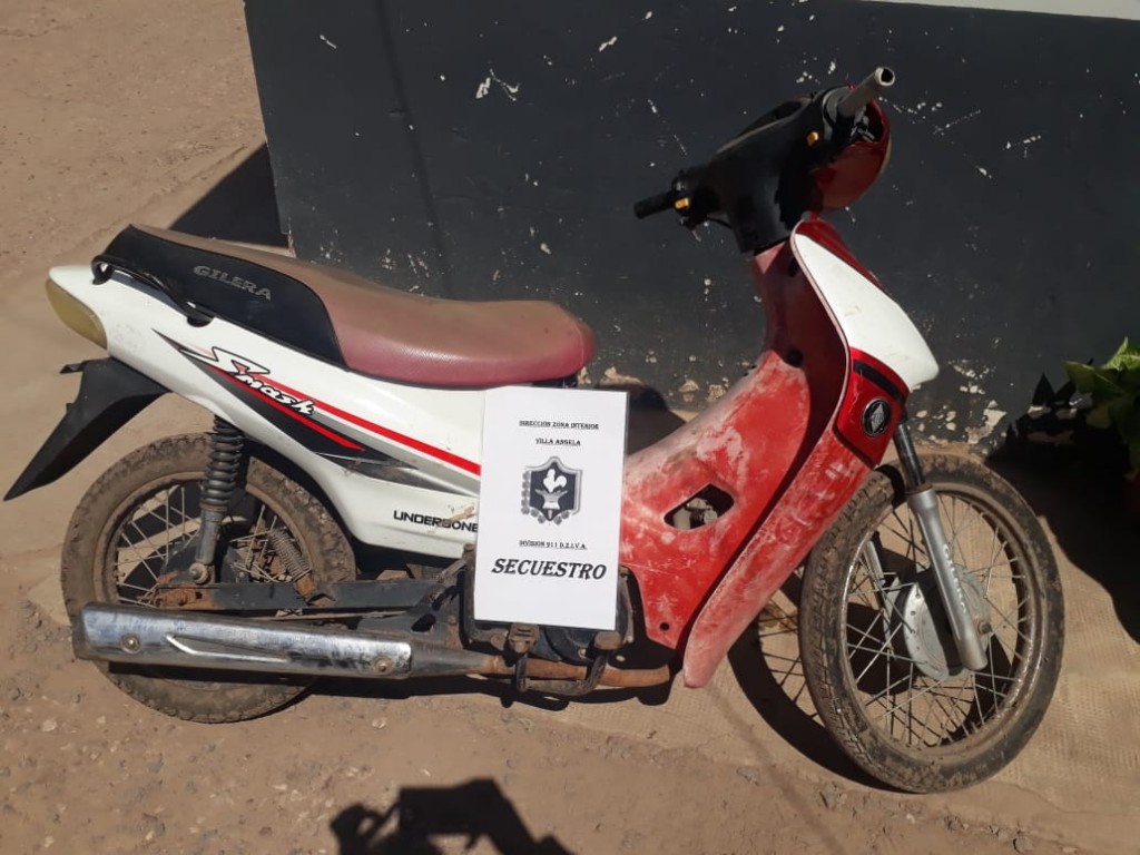 EN FECHA 23 DE FEBRERO A LA HORA 11:15, PERSONAL DEL 911, REALIZANDO RECORRIDA PREVENCIONAL EN MÓVIL, POR EL LOTE N° 20, ESTA, REALIZANDO TAREAS INVESTIGATIVAS RELACIONADO A LA SUSTRACCIÓN DE UNA MOTOCICLETA, EN CALLE URQUIZA DE LA CIUDAD, DONDE SE LOGRAN OBSERVAR POR CALLE VICENTE ALVAREZ Y MENDOZA, (EN EL INTERIOR DE UNA TAPERA), UNA MOTOCICLETA ABANDONADA MARCA GILERA, MODELO SMASH, 110 CC., COLOR ROJO, LLANTA ALUMINIO A RAYOS, CON CARENADOS COMPLETO, SIN GUARDABARRO DELANTERO, LA MISMA HABÍA SIDO DENUNCIADA COMO SUSTRAIDA POR EL CIUDADANO *J. J. L., DE 36 AÑOS, SEGUIDAMENTE SE PROCEDIÓ AL SECUESTRO DEL RODADO MENCIONADO BAJO ACTA, SE PROCURA DAR CON LOS AUTORES DEL PRESENTE HECHO.