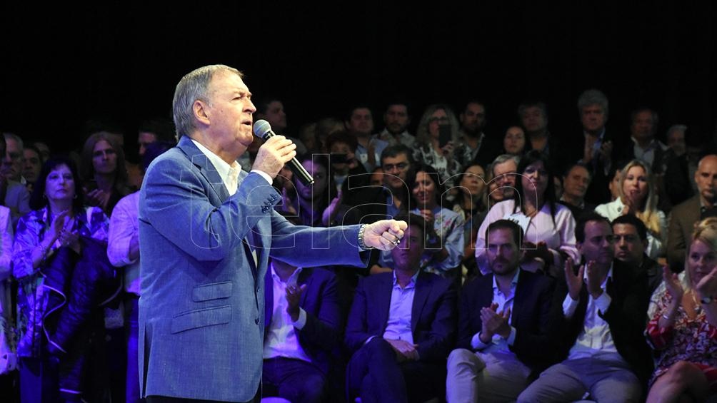 En el recinto sonaba la música del cuartetero Juan Carlos "La Mona" Giménez, mientras en una pantalla gigante ubicada en el escenario se veía la foto del gobernador con la leyenda "Juan Schiaretti. Sabe, hace, cumple".