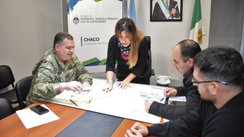 La ministra de Gobierno, Jessica Ayala, mantuvo una reunión con el teniente coronel Osvaldo Díaz Colodrero de la III Brigada de Monte del Ejército Argentino, y el director de Defensa Civil del Chaco, Oscar Ferri, donde definieron la división de la logística con dos centros de operaciones que funcionarán en Charata y Castelli.