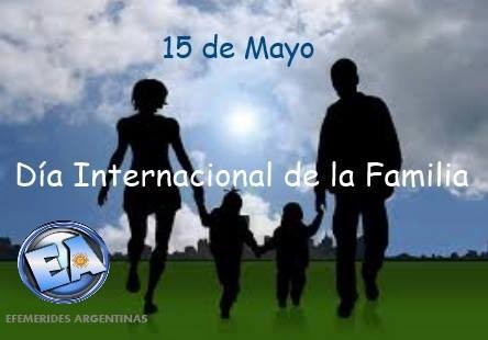 El Día Internacional de la Familia se observa cada año el día 15 de mayo desde 1994. Esta fecha fue proclamada en 1993 por la Asamblea General de las Naciones Unidas,