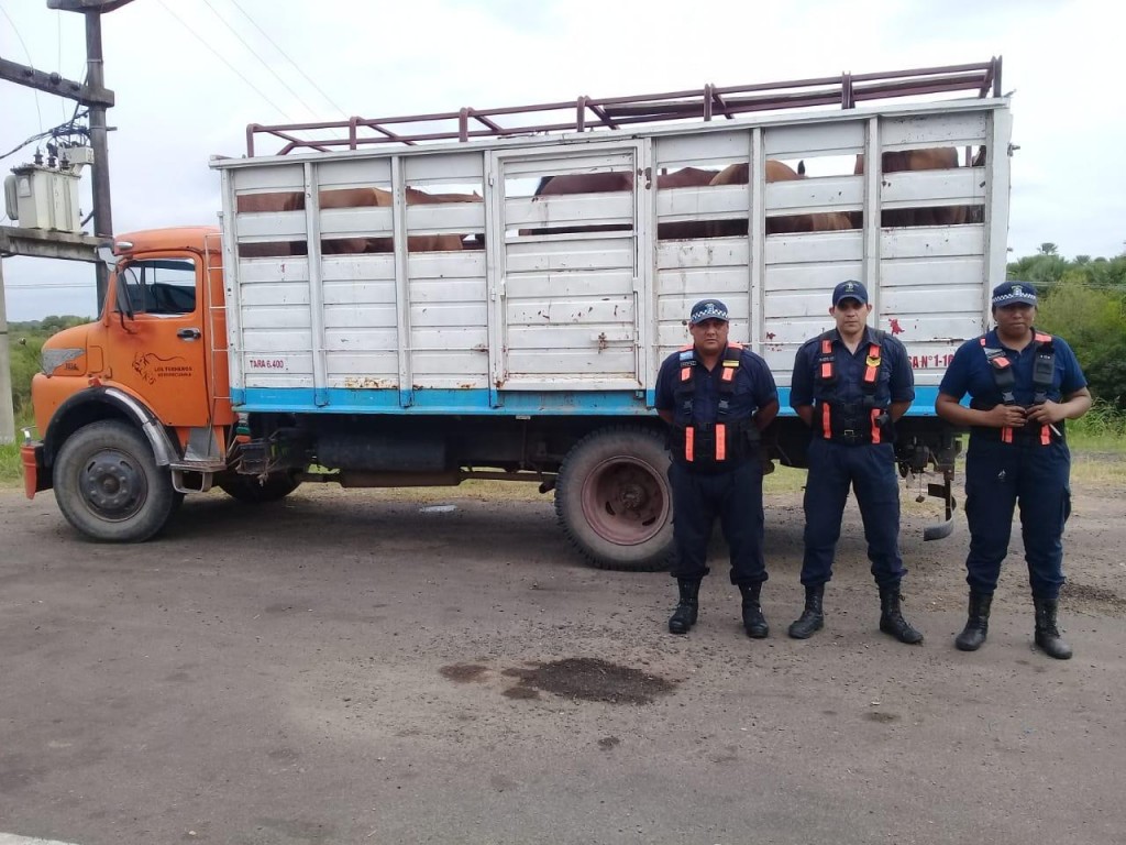 Esta tarde, alrededor de las 15:40, personal del Puesto de control Caminero Puente Gral Belgrano, detuvieron a un Camion marca Mercedes Benz, con jaula para traslado de hacienda en el cual llevaba la cantidad de 5 equinos desde la provincia de Corrientes hacia la localidad de Taco Pozo Chaco.
