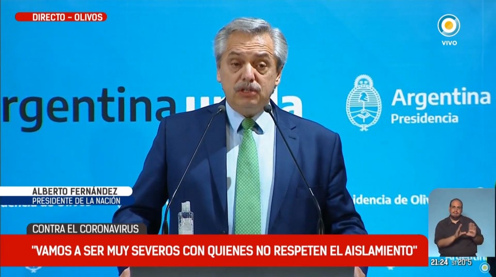 CUARENTENA TOTAL: ALBERTO FERNANDEZ DECRETA EL AISLAMIENTO PREVENTIVO Y OBLIGATORIO DE TODOS LOS CIUDADANOS A PARTIR DE LAS 00:00 HS