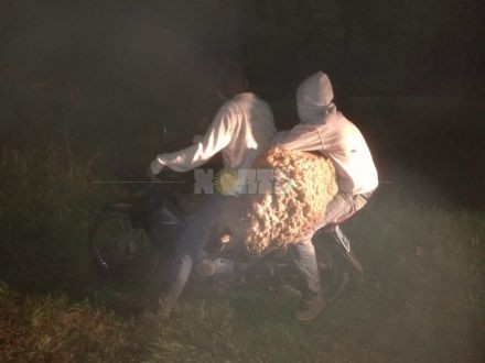 Los cuatreros motorizados fueron sorprendidos “con las manos en la oveja” que ya era transportada sobre el regazo del joven que iba sentado de acompañante en una moto Honda Biz 125 c.c.