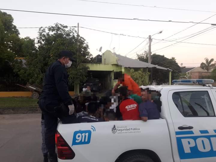 Pasada las 19 Horas personal policial llego a la canchita de fútbol del barrio 25 donde 12 personas entre ellos 2 menores se encontraban jugando a la pelota violando la CUARENTENA dispuesta por el Gobierno Nacional, por la pandemia del coronavirus en nuestro país
