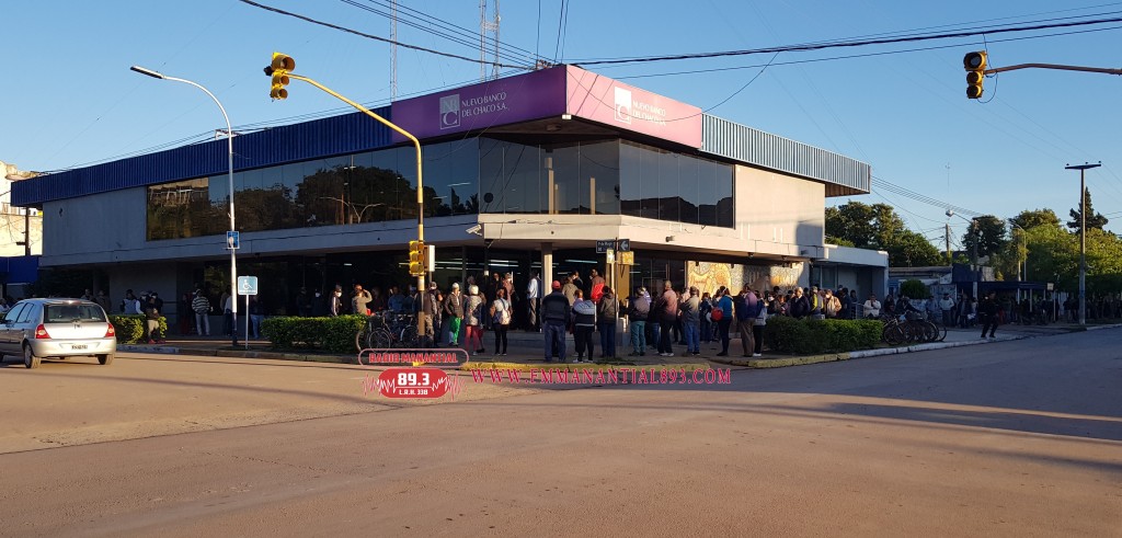 Se registraron largas colas en los diferentes puntos de pagos de los bancos de la ciudad de Villa Ángela, en donde si bien es cierto, que la gente apostada en espera de su cobro en el BANCO NACION, Sucursal Villa Ángela, era mas ordenada y con las distancias de protocolo respetadas, las personas apostadas en las filas del NBCH no respeteron el protocolo.