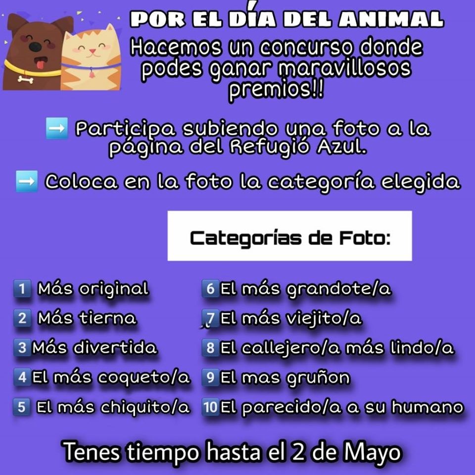 Por otra parte, en conmemoración al día del Animal el 29 de Abril próximo, desde el “REFUGIO AZUL”, están llevando adelante una interesante propuesta desde las redes sociales.