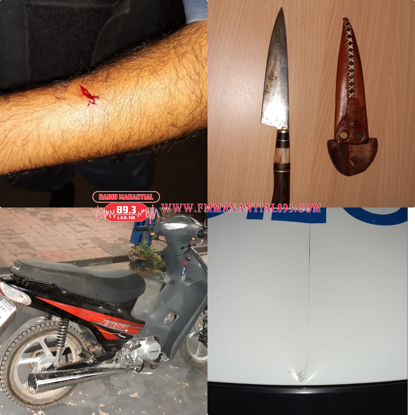 Allí se produjo la pelea entre varias mujeres y el vecino referido, quien resulta con varias lesiones, el personal policial intenta intervenir, pero son superados en número, esperando el apoyo correspondiente, son agredidos por un masculino quien con un machete golpea el móvil policial (capot), y luego con la misma arma lesiona al empleado policial, provocándole un corte superficial en el antebrazo izquierdo.