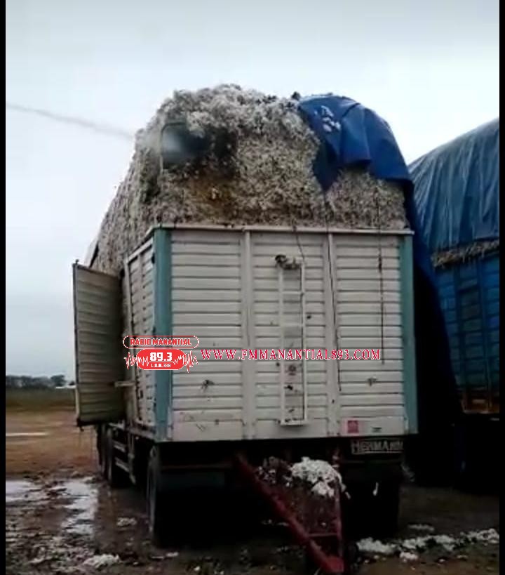 Un hecho sumamente insólito, un rayo impacto sobre un acoplado con algodón que esperaba para ser desmotado.
