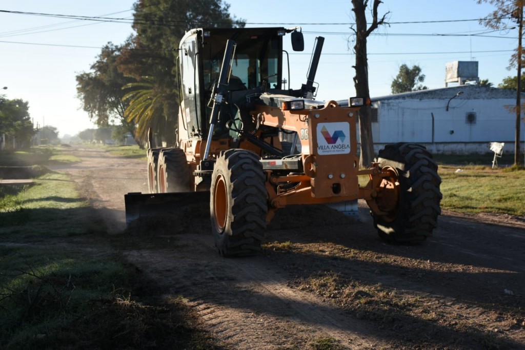La motoniveladora llevó a cabo tareas de perfilado en la cuadricula correspondiente entre las calles 1° de mayo a Monteagudo y Colón a Santa Fé.