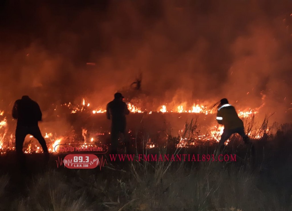 El d�a de hoy 11 de mayo, a las�19.50 se recepcion� un llamado al abonado gratuito N� 100 de P., L. manifestando que por Ruta Nacional N� 95 distante a 2 km de esta ciudad hacia el cardinal Sur, en terreno del parque industrial, se estaba produciendo un incendio de pastos en el terreno bald�o.